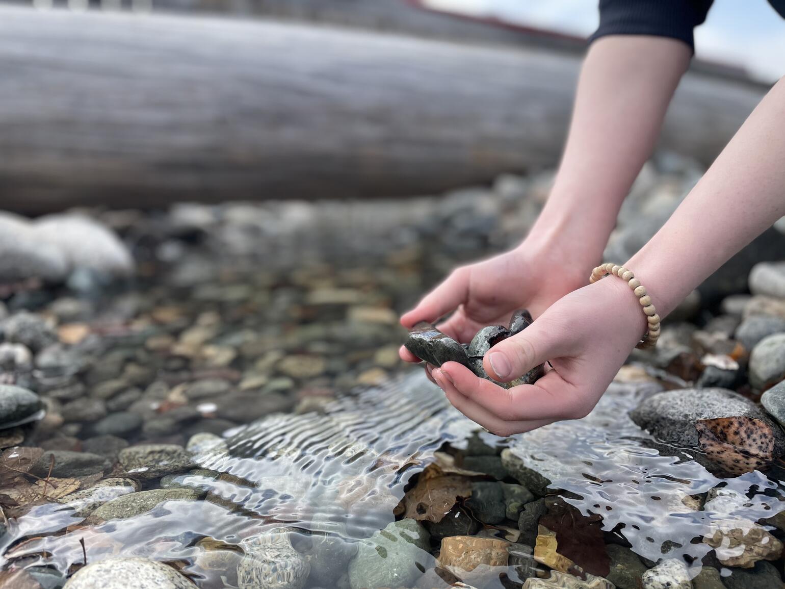 Another flat part of the stream with small pebbles in the bottom where students could remove a number of pebbles and name the events/issues/worries that are causing them stress/worry/anxiety and visualize releasing those to the water to allow them to be washed away. Traditionally, this was done with a close loved one or a trusted elder.